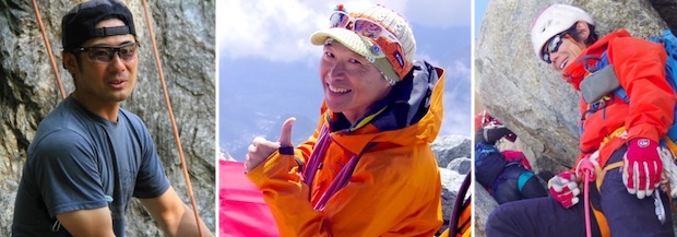 左から山岸慎英さん、近藤謙司さん、加藤直之さん。山岸さんは白馬育ちのヨーロッパ仕込み。若くしてシャモニでクライミングを学んできた新進気鋭の国際山岳ガイド。近藤さんは、いまでもチョモランマ冬季北壁最高地点到達の記録を持つ登山家。アドベンチャーガイズの代表、そして国際山岳ガイドとして、多くの登山者を世界の最高峰へと導いている。加藤さんは、東京生まれのアラスカ仕込み。デナリをはじめさまざまな困難な山に挑み続けてきた。現在は、国際山岳ガイドの資格を持つ。パタゴニアのスノーアンバサダー、国立登山研修所の講師などさまざまな立場で活躍中。