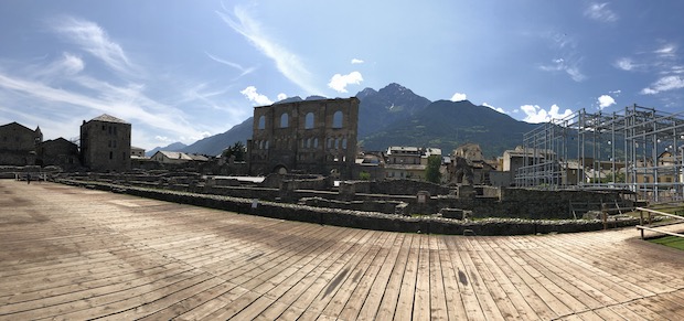 7月4日の木曜日は「休日」ということに。ならば、いざイタリアへ。シャモニからモンブラントンネルを抜け、クールマイヨールでバスを乗り継いでヴァッレ・ダオスタ州の州都アオスタへと向かった。ここは古代ローマ帝国の軍事都市があった場所。街のあちこちにローマの遺跡があり、歴史好きにはたまらない1日に。山を割り切ってしまうとこんな楽しみもある。ヨーロッパは奥深い。