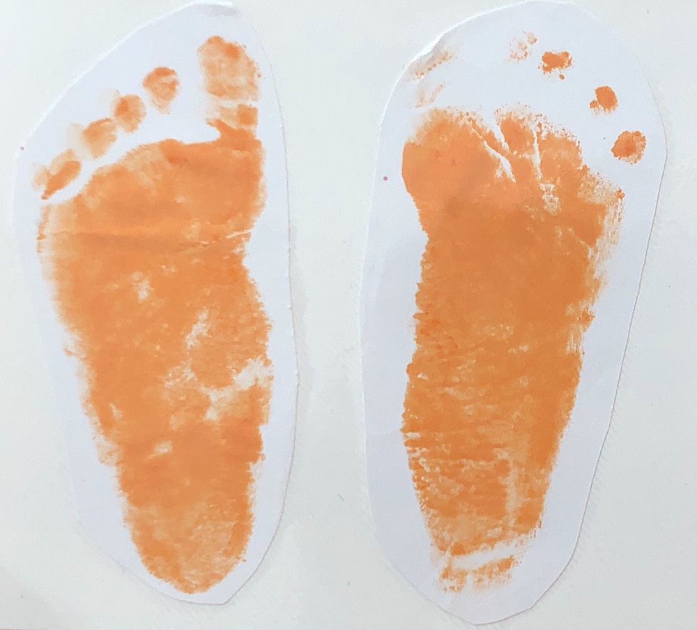 2歳の誕生日にとった娘の足型。土踏まずがまだほとんどない。これから足指をしっかり使うことでアーチができていく。