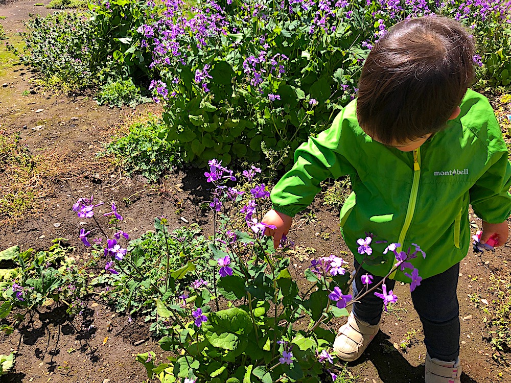 都内では、キレイに整備された公園が多く、雑草が生えた空き地や、不整地が少ない。公園の花は「取っちゃダメよ」と教えるので、いざ自然の中で植物に触れるときも最初は躊躇する娘。