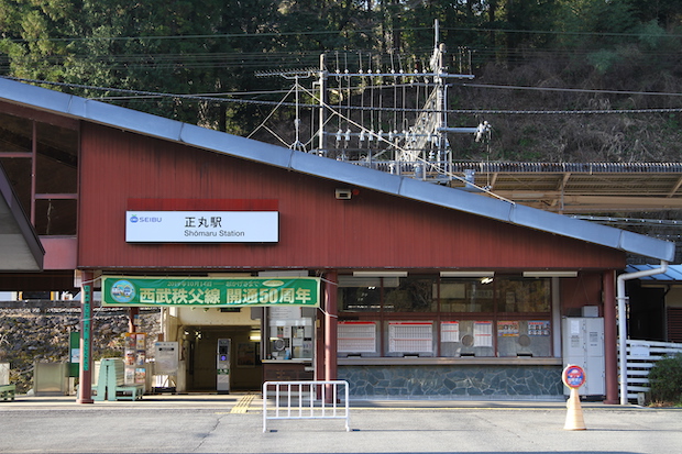 電車で行く場合は、7:05池袋駅発の快速急行長瀞行に乗れば、池袋から乗り換えなしで正丸駅に8:29着ととても楽ちん(※土日ダイヤの場合)。改札を出てから左を見ると行き先を示す道標がすぐ目に飛び込んでくるので、そこから階段を下りて歩き出します。