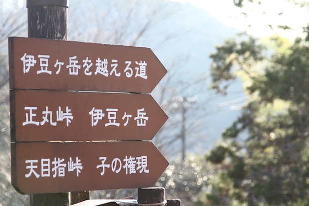 ここで少し休憩をした後、子ノ権現をめざして歩きはじめました。伊豆ヶ岳から子ノ権現までは古御岳、高畑山、中ノ沢ノ頭の3つのピークを登っては下る縦走路。低山ではあるのですが、歩きごたえのあるルートです。足腰の健康を祈るためにここでしっかり歩いておくのです。