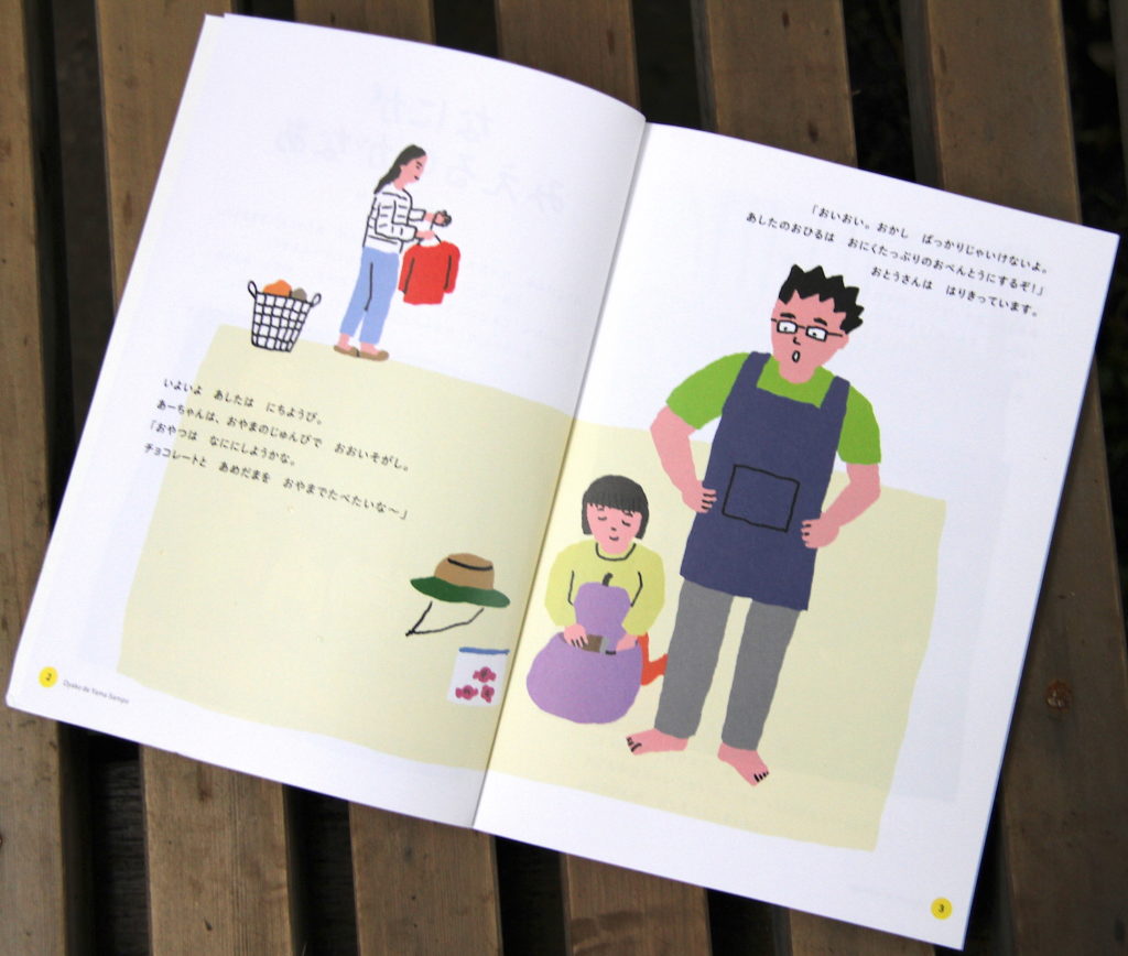 さらに1ページ目を繰ってみれば、「絵本」そのものが展開される。イラストレーターのなかむらるみさんのほんわかとしたタッチで、あーちゃんとおとうさんの山登りの話がはじまっていた。なかむらるみといえば、話題となった『おじさん図鑑』(小学館)の著者......じつは山の絵もたくさん書いているんですね。