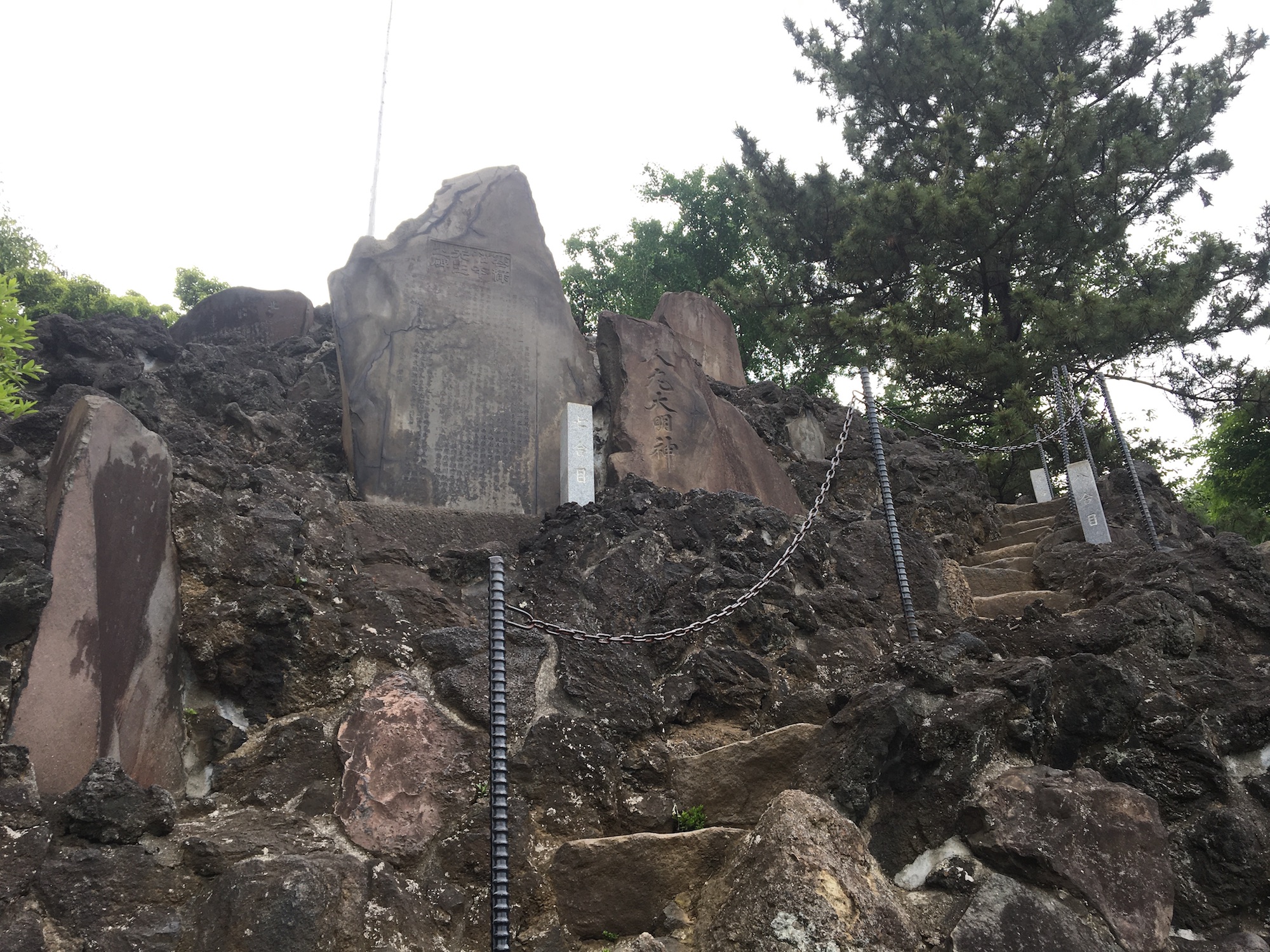 富士山のミニチュアでも富士塚の中で最も高い15m(低っ!)もの高さを誇る品川神社の富士塚は、ゴツゴツとした岩山を呈し、厳しい富士山を模した富士塚です。鎖場や欄干によってしっかりとルート工作された登山道をすすむと、頂上からは東海道を見下ろすことができ、往時に想いを馳せることができるでしょう。
