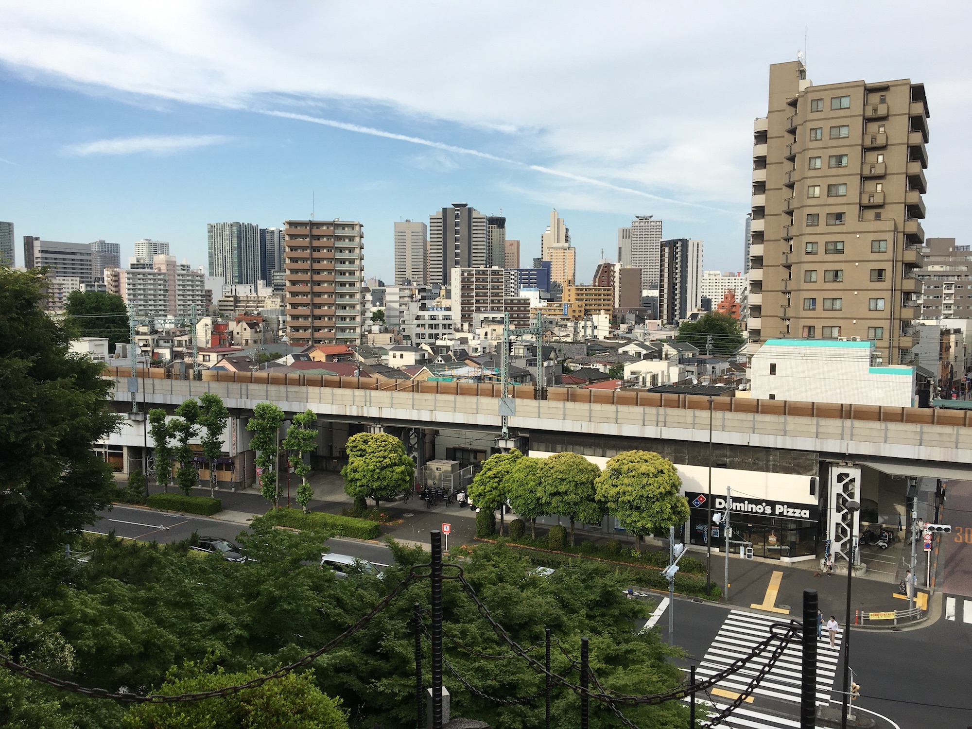 目の前には旧東海道と並走する1国(国道15号)を見下ろす。眼前のビル群は当時は海だった。