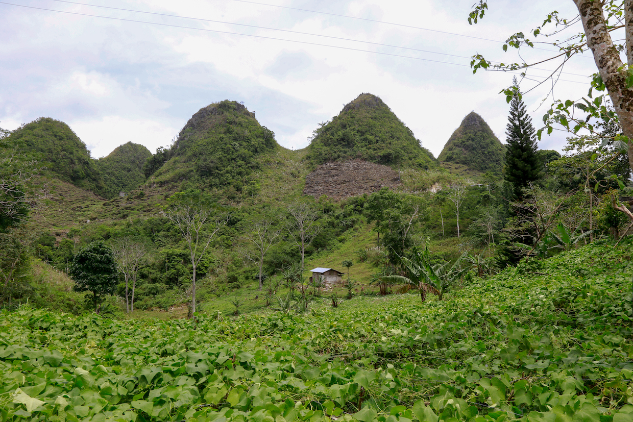 道を歩いているとつねに見えていた石灰岩質の円錐形の小さな山は、このエリア特有のもの。セブ島からもアクセスしやすい人気の観光地、ボホール島の “チョコレートヒルズ” と呼ばれるものに酷似しています。