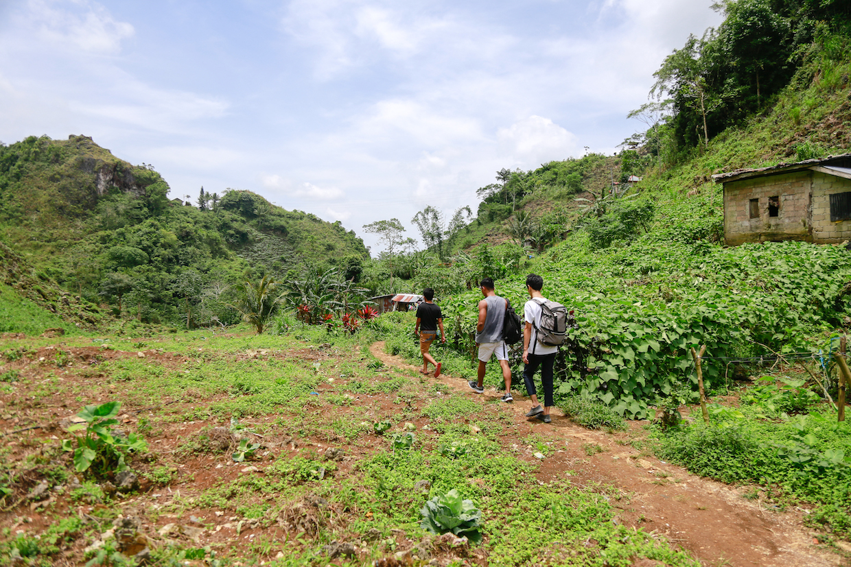 ガイドのジャック君に連れられ、一路、滝に向かいはじめたわれわれ。オスメニャピークの登山道からはずれ、まずはキャベツ畑の中を突っ切ります。セブ島でも高地に当たるここら辺のエリアは、涼しい気候なので葉物野菜が名産らしいです。