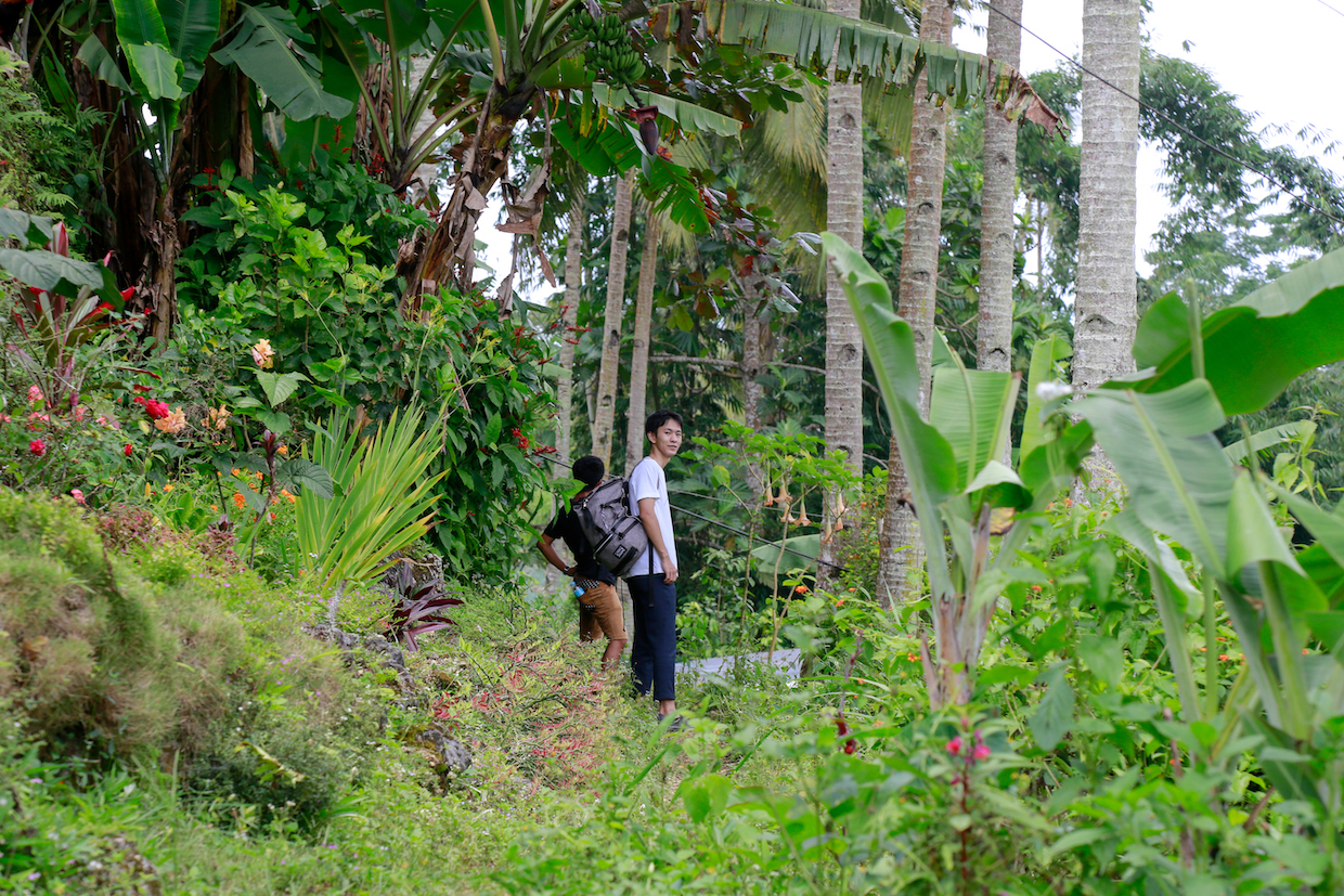 うつくしい滝までのトレイルは、山間の集落の私道から畑の畦道までバリエーションに富んでいます。