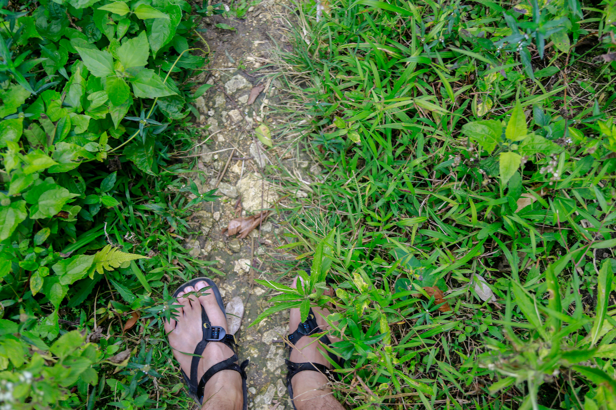 歩きはじめてから4時間、足の裏が痛い。ベアフット系サンダルでトレランとか意味がわかりません。鍛錬が足りませんね。