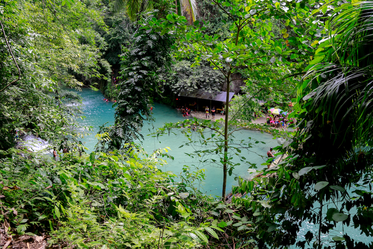 オスメニャピーク(Osmeña Peak)で360度のパノラマを堪能したあとは、いよいよカワサンフォールズ(Kawasan Falls)へ。先に書いた通り、来たらなんとかなるだろうと思っていましたが、登山口の売店の人に話を聞くと「何も標識がないし、土地勘がないと絶対に迷う」と言われたので、じつはガイドをお願いしていました。