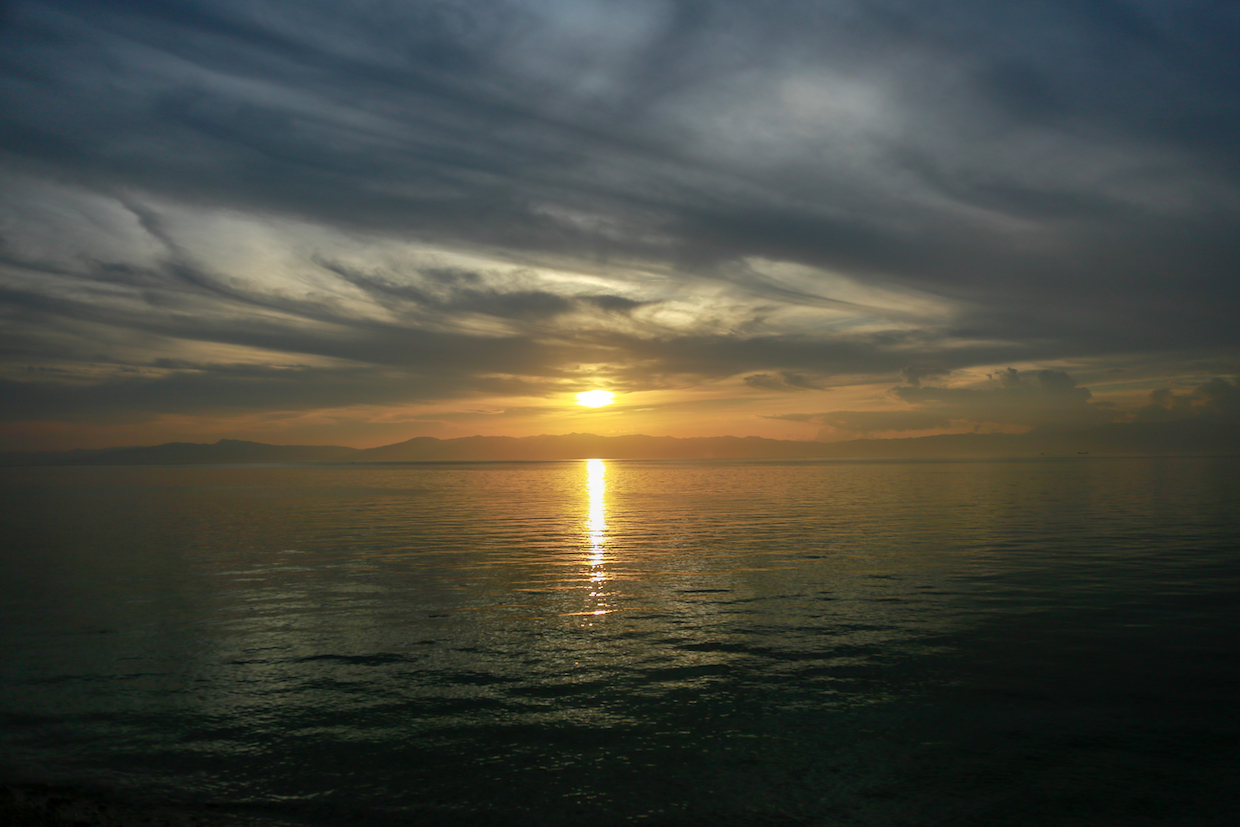 カワサンフォールズの入り口にあるバス停から眺めた夕陽。朝はセブ島の東岸にいたのに、いつの間にか西岸まで移動していました。