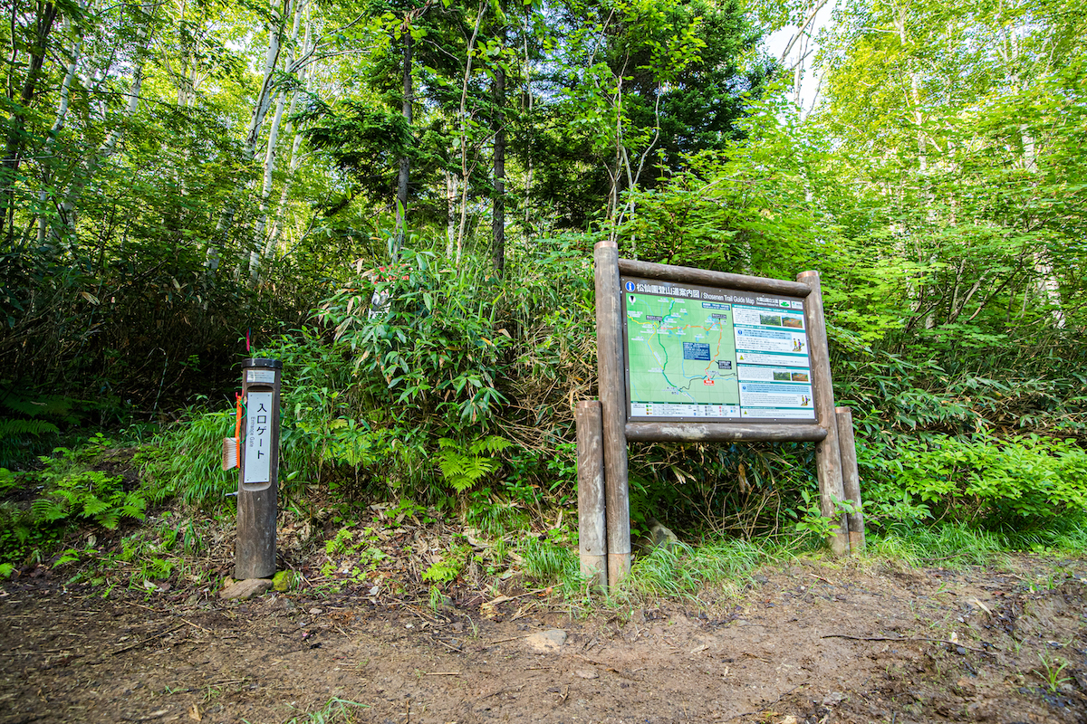 松仙園登山口にはブラシが設置されている。湿原に外来種の種を持ち込まないよう靴底の土をブラシできれいに掃除するというルールも設定されている。こうした環境への配慮をしっかりルールとして設けている登山道はあまり多くはない。原生的な自然を守っていく意味でも大切にしていきたい。