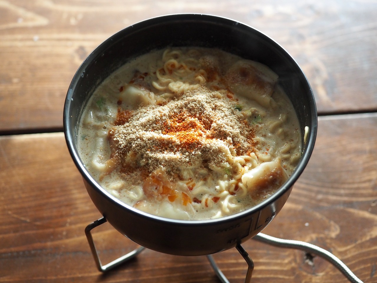 あ、ついでと言っては何ですがサッポロ一番についてくる七味も入れちゃいましょう。完成です!