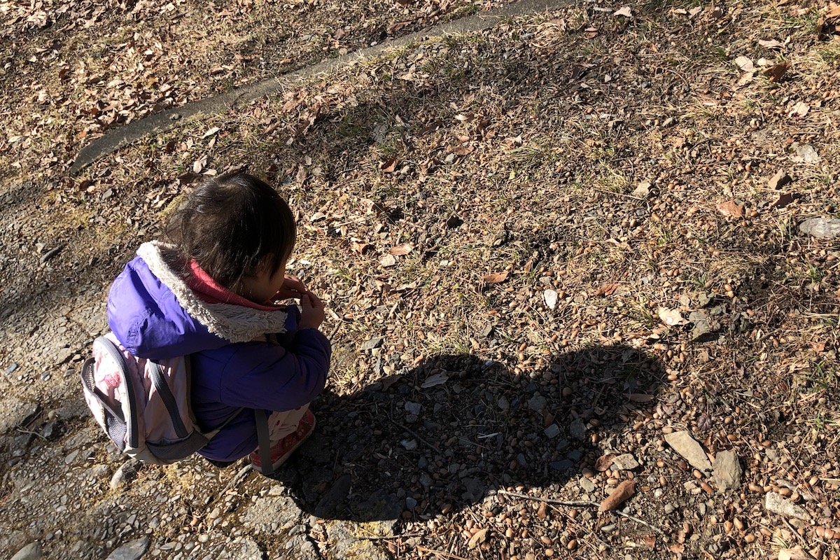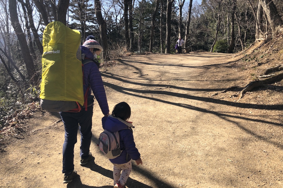 矢倉台から宮ノ平駅までの下りは30分ほど。山道ではあるが踏み固められていて歩きやすい。それでも、落ち葉で石や木の根が隠れていたりするので、娘を抱っこして山道を歩く夫はやはりすごいと思う。