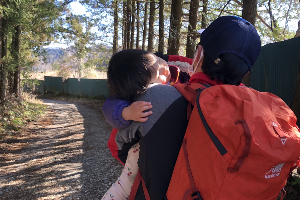 下りはもう一歩も歩く気がなくなってしまったのか、「抱っこ」と座り込んで、動かざること山のごとし。仕方がないので、夫が抱っこし下山することになってしまった。