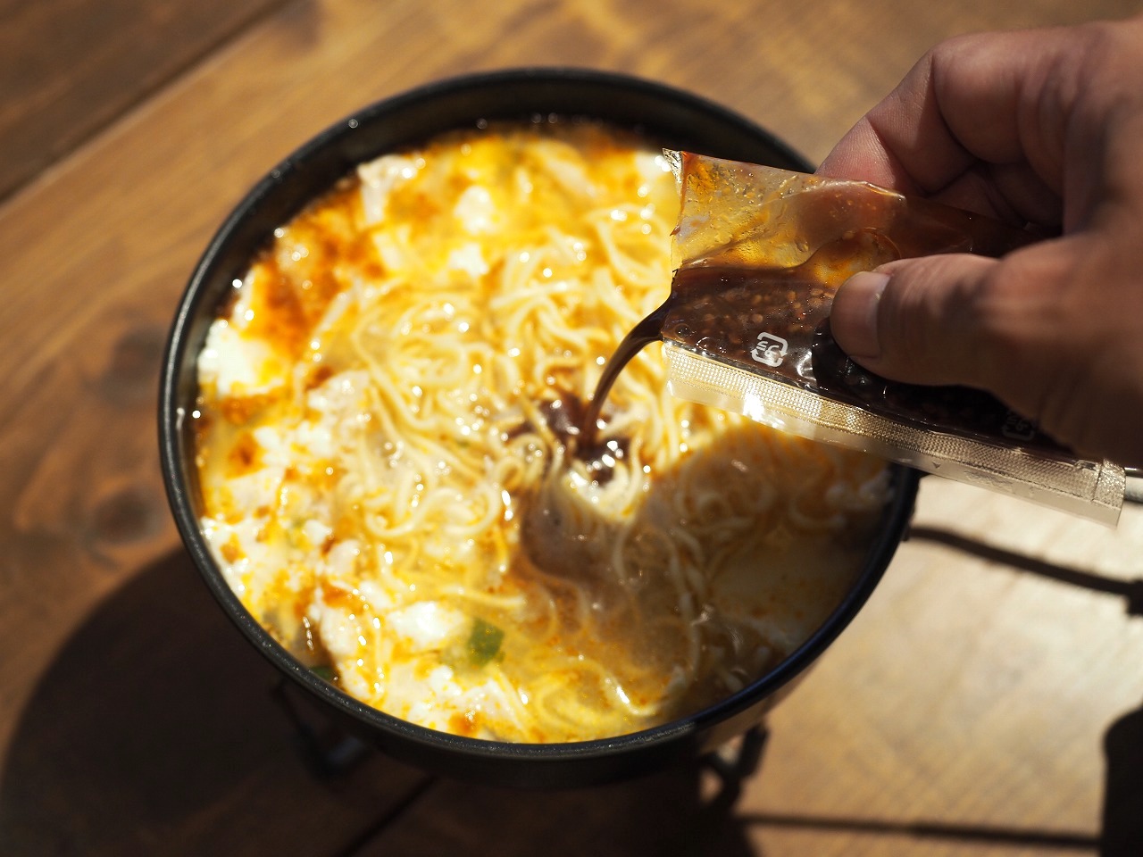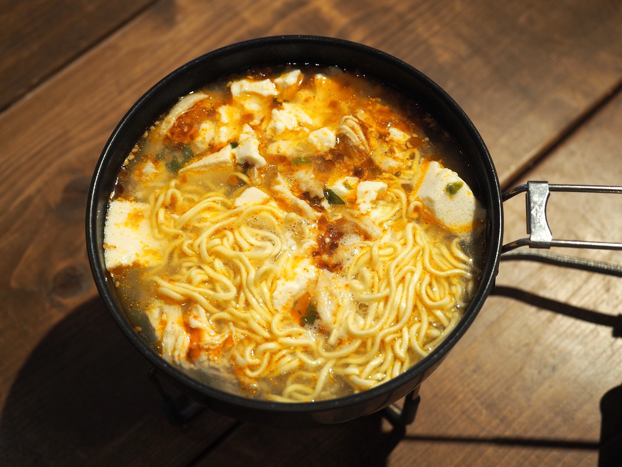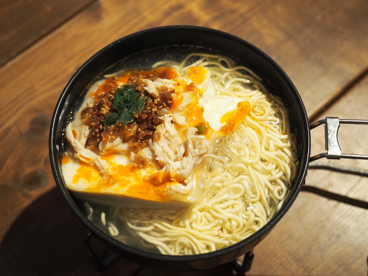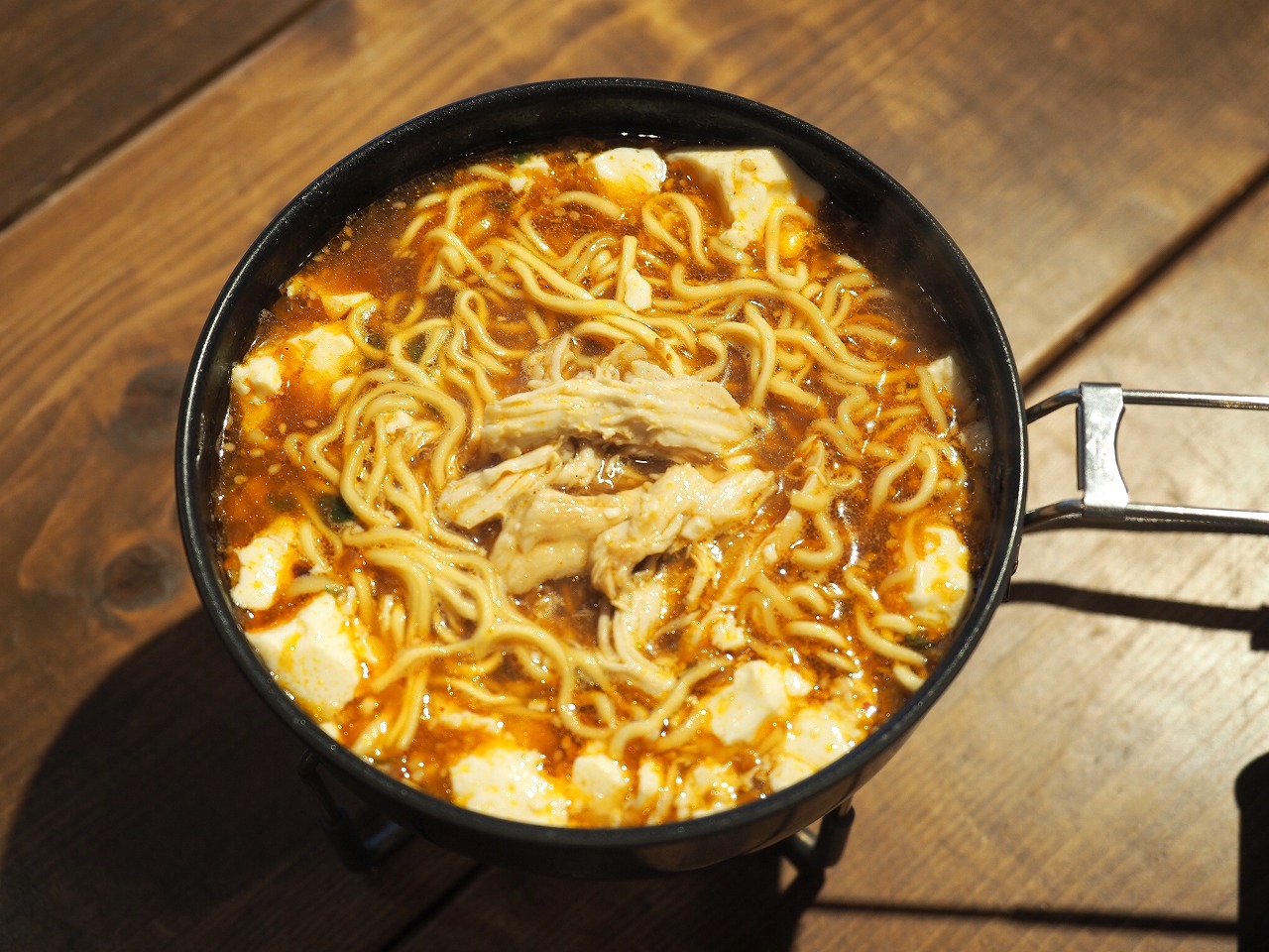 鶏肉だけじゃなくて豆腐が優しいアクセントになって満足度も高い! 唯一の弱点はちょっとゴミが油や水分が多くてザックでの漏れに注意ってことかな。