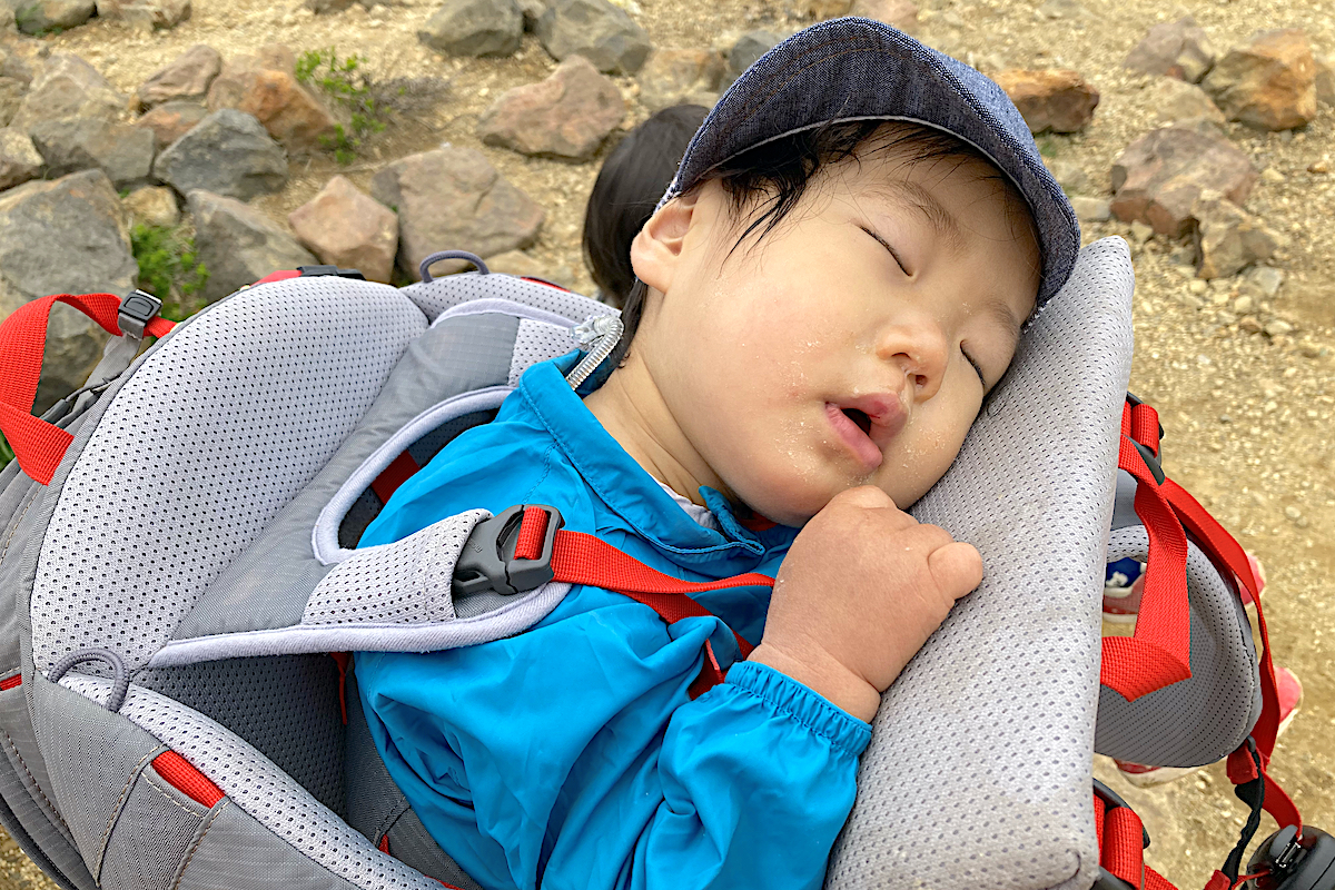 私自身も背中に息子を背負っていながら、足を滑らせて大々的に尻もちをついてしまった。ベビーキャリーに守られて大事にいたらなかったが、子どもの命を守るためにも、やはり山に行くならそれなりの装備を揃えて行くべきだろう。