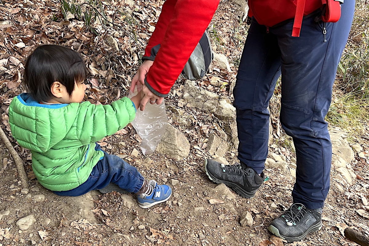 登山中、息子はベビーキャリーで固定されていたので、夫と私のふたりがかりでヤンチャな娘に集中することができた。それが、ふたりとも歩かせるとなると、あっちを見たり、こっちに駆け寄ったりという子どもたちを追いかけて、一瞬も気を抜けなくなる。