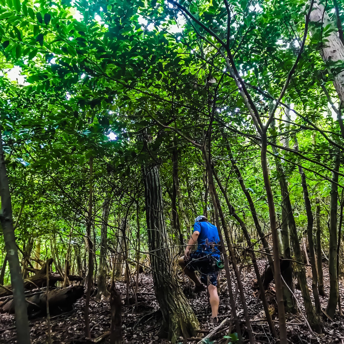 ある程度、散策路が完成してから、ついにクライミングエリアとなる岩の状況調査を開始していく。