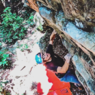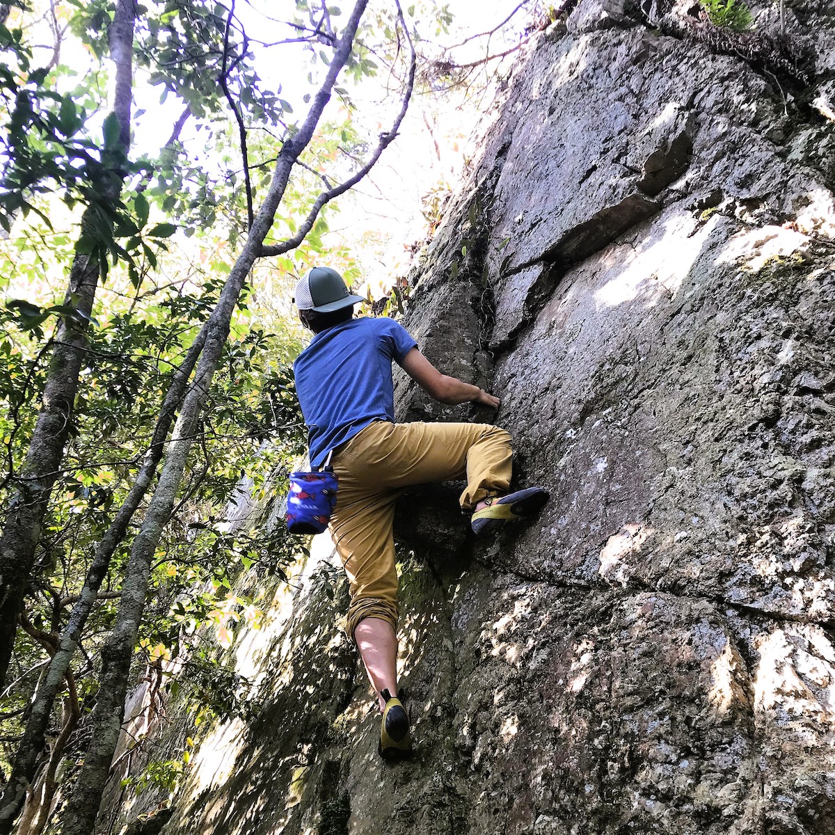 岩の高さは推定6メートル。下部を登ってみたが岩質は花崗岩で強く、登りやすい形状で初心者のクライミング体験にはイイ感じの岩であった。