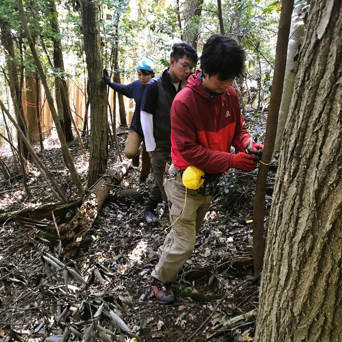 また、その合間にどのような木々が生育しているのかも調査を行っていく。確認できたのはお茶の木やクロモジなど資源となる木だった。