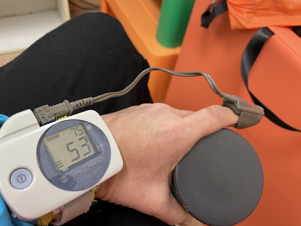 低酸素状態の中でマシンの上で歩いたりして強度を上げてみたりします。