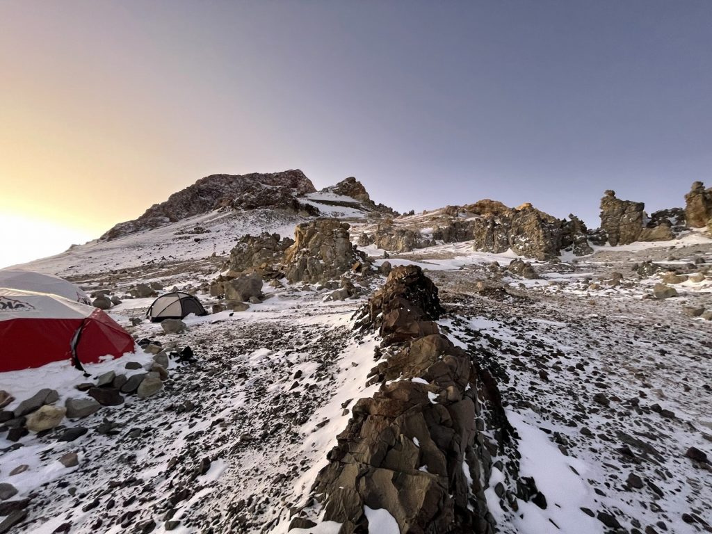 山頂へ向けて、出発する日となった。8時、いつものようにダイニングで朝食を食べ、身支度と荷物の最終チェックをして、9時40分にベースキャンプを出発。10時50分、毎度の休憩ポイントであるピナクルに到着。12時ごろ、C1に到着。10分ほど休憩して出発。ここまでは毎度のルーティンだ。