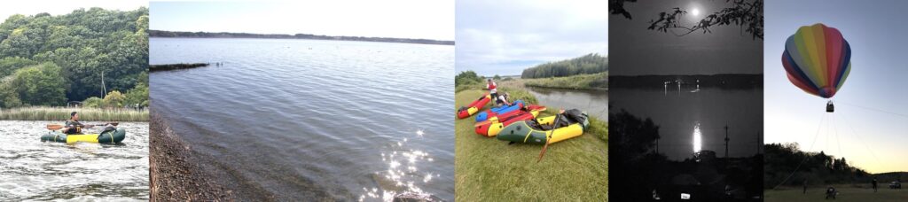 パックラフトをみずから担ぎ、約4.2km先にある親沢公園から出艇。その後、涸沼を漕ぎ抜き、水門をくぐって若宮川から会場へと戻る小遠征。