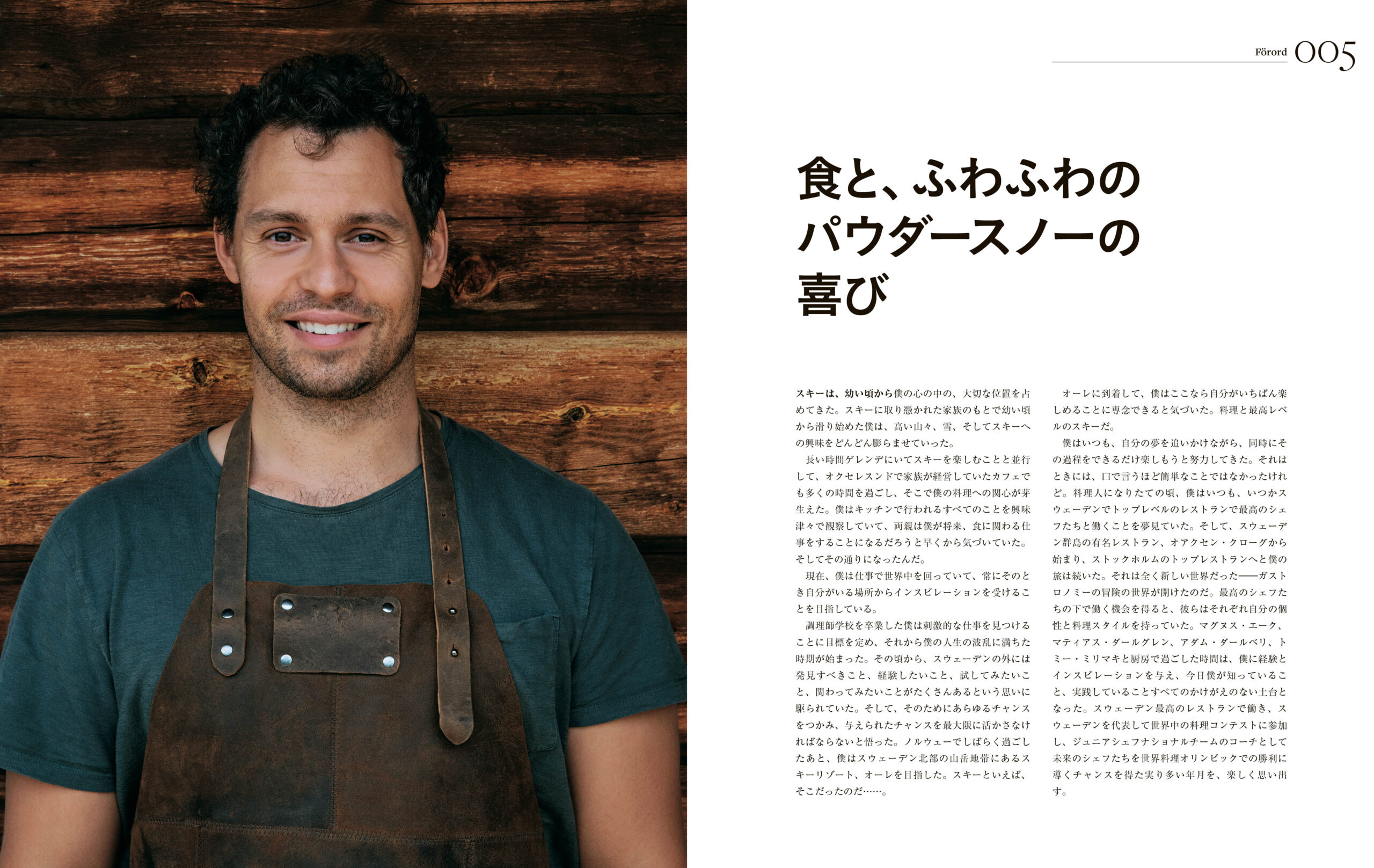 著者のリンドルさんは、カフェを営業していた母親の影響で幼い頃から料理に興味をもち、若くしてスウェーデンの有名レストランで腕を磨くなど、数々のトップシェフの下で修業した本格派の料理人。その一方で、幼い頃からスキーに打ち込み、スイス・エンゲルベルクに暮らしていた時期は、午前中は雪山を滑り、午後からはレストランで料理を作るという生活を続けていたのだそうだ